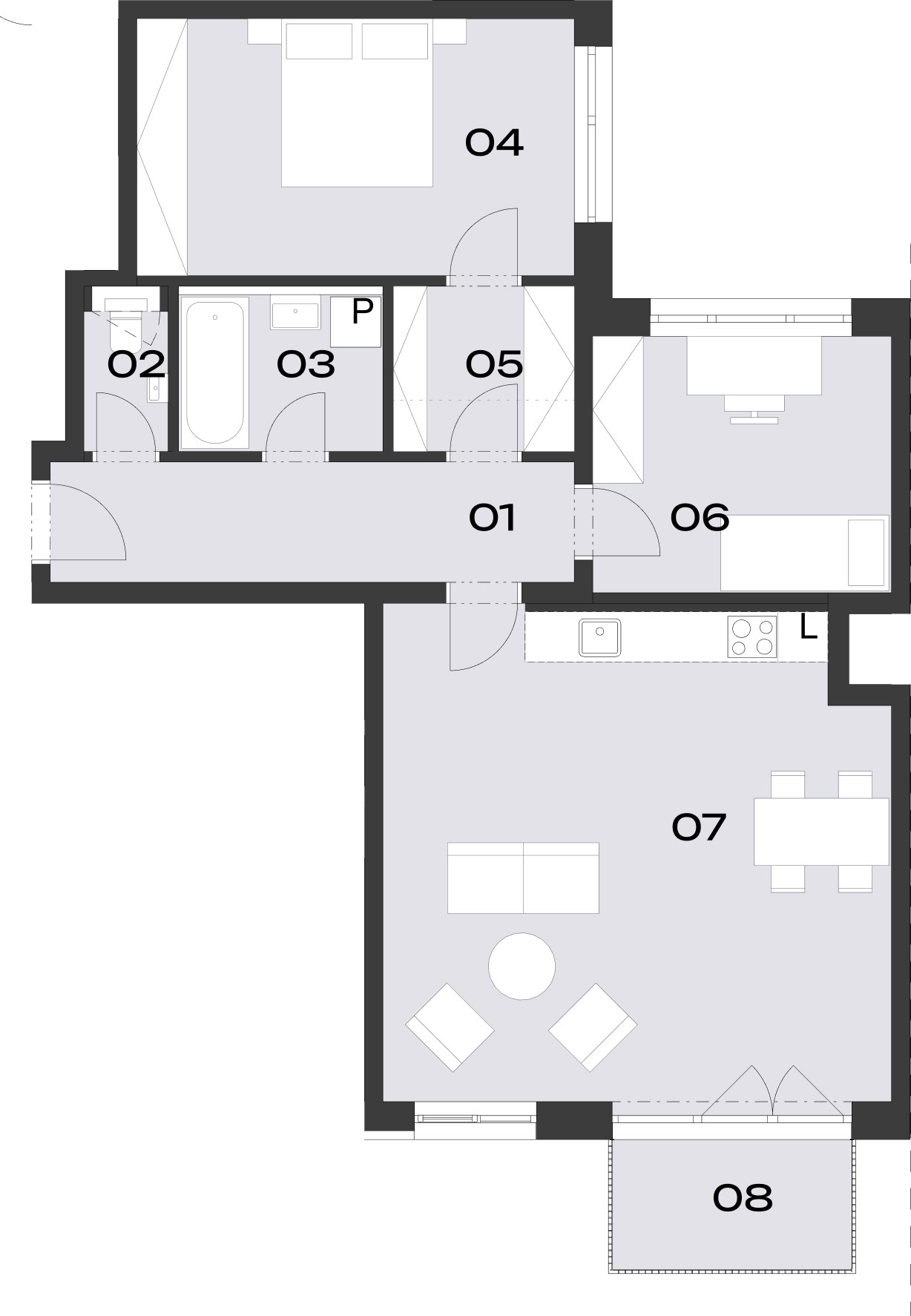 | B8_03.06 | byt | 3.NP | 3+kk | Z | 87,4 m² | 6,6 m² / – | – / – | 94,0 m² | 2028 | Na vyžádání | |||