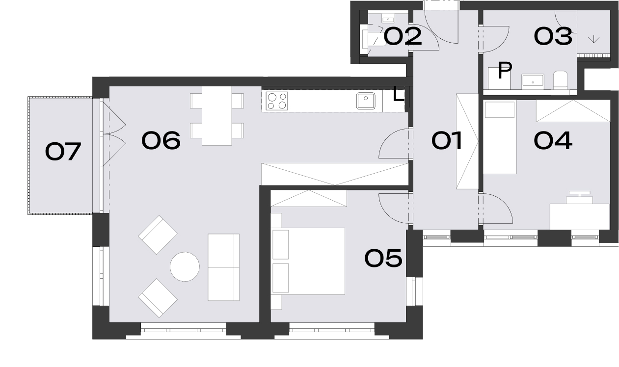 | B3_03.01 | byt | 3.NP | 2+kk | ZV | 58,0 m² | 5,4 m² / – | – / – | 63,4 m² | 2028 | Rezervováno | |||