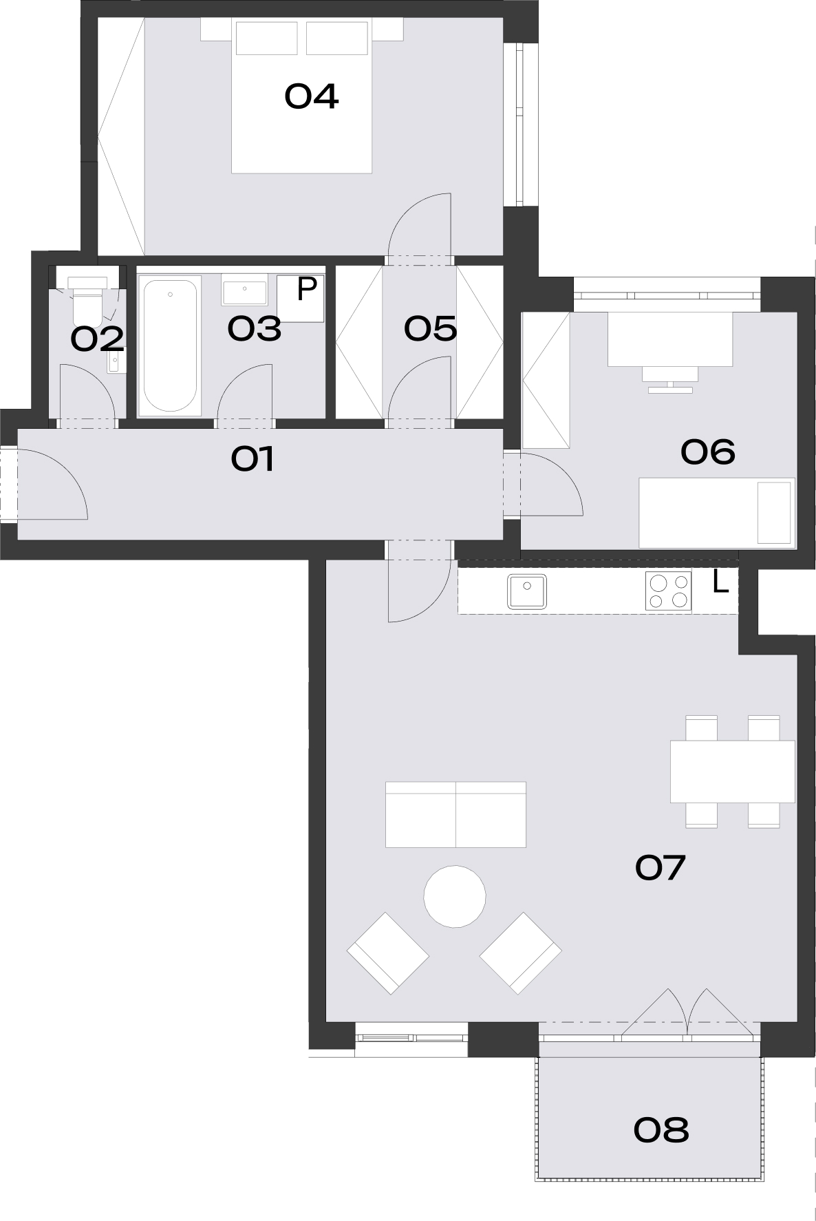 | B8_03.06 | byt | 3.NP | 3+kk | Z | 87,4 m² | 6,6 m² / – | – / – | 94,0 m² | 2028 | Na vyžádání | |||