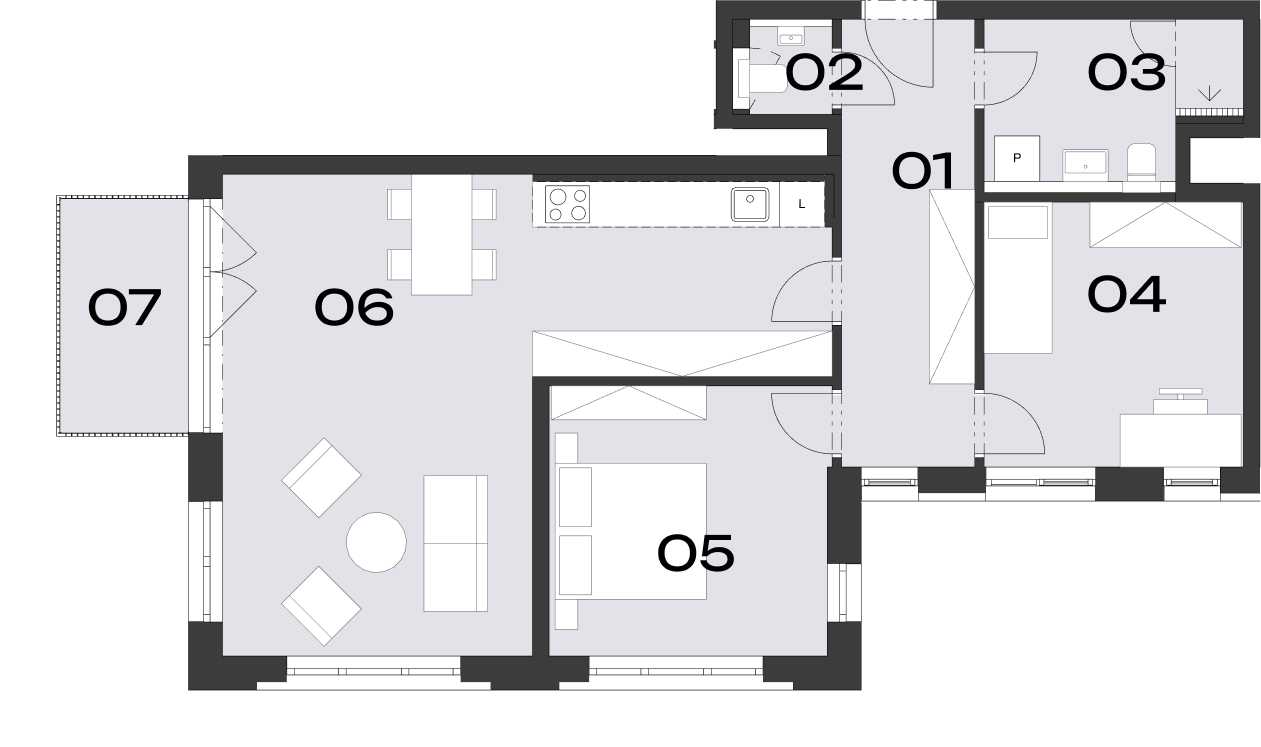 | B3_03.01 | byt | 3.NP | 2+kk | ZV | 58,0 m² | 5,4 m² / – | – / – | 63,4 m² | 2028 | Rezervováno | |||