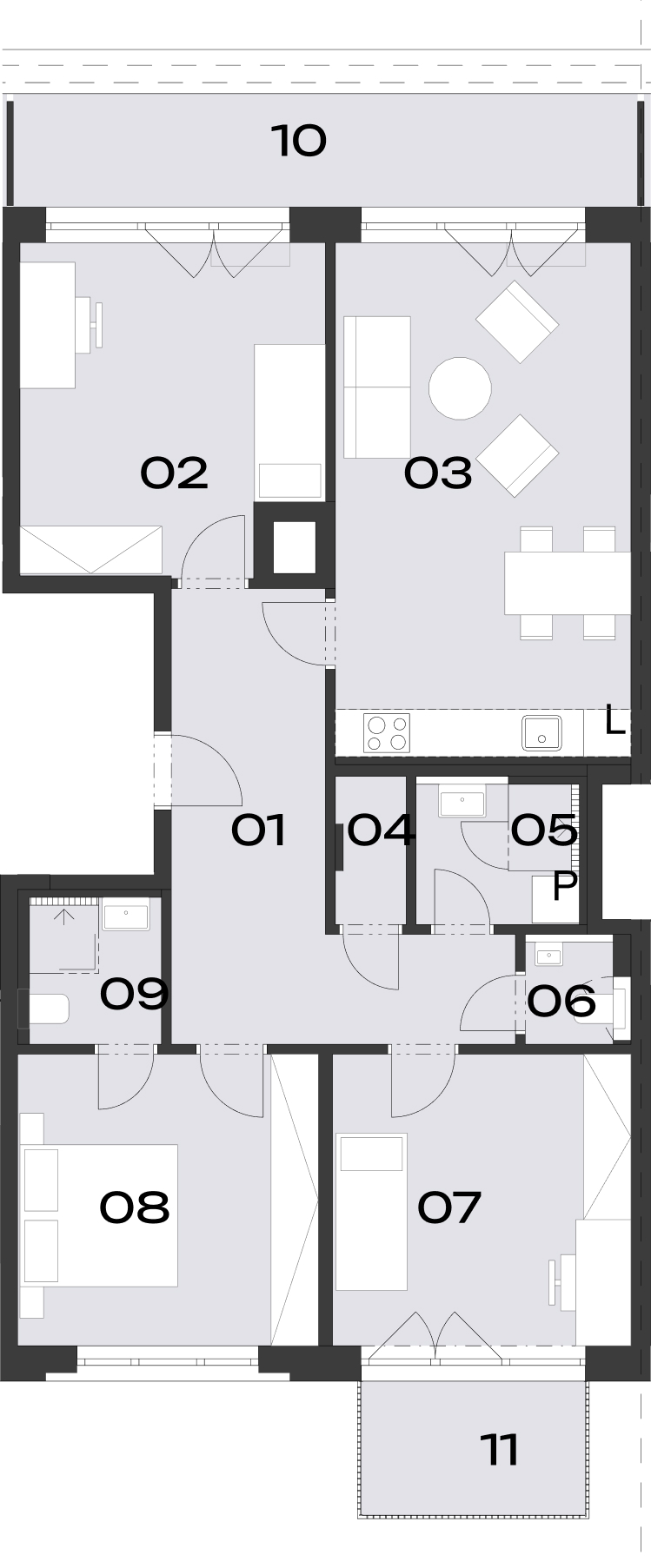 | B4_05.01 | byt | 5.NP | 3+kk | SJ | 79,5 m² | – / – | 11,4 m² / – | 90,9 m² | 2028 | Na vyžádání | |||
