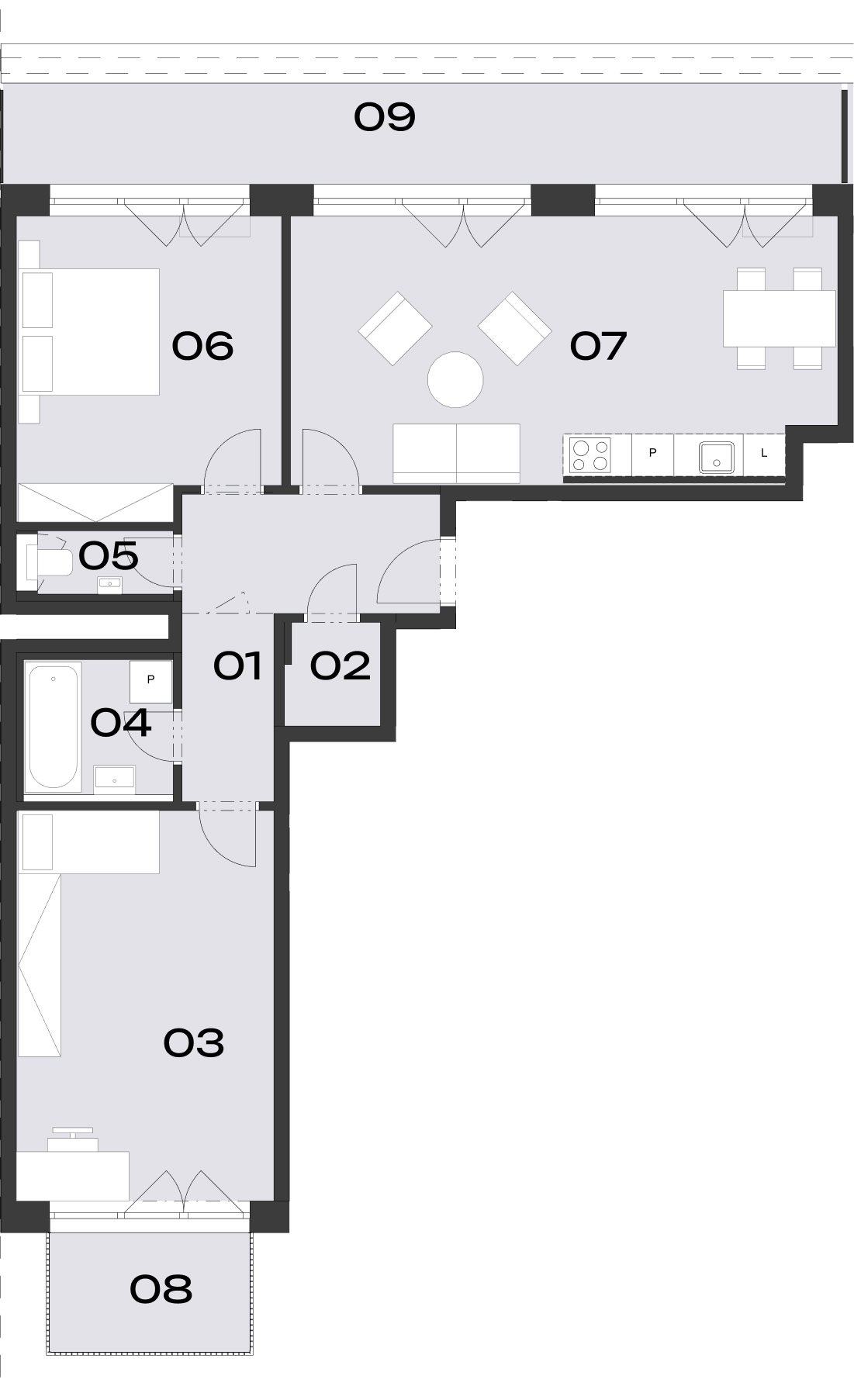 | B8_03.06 | byt | 3.NP | 3+kk | Z | 87,4 m² | 6,6 m² / – | – / – | 94,0 m² | 2028 | Na vyžádání | |||