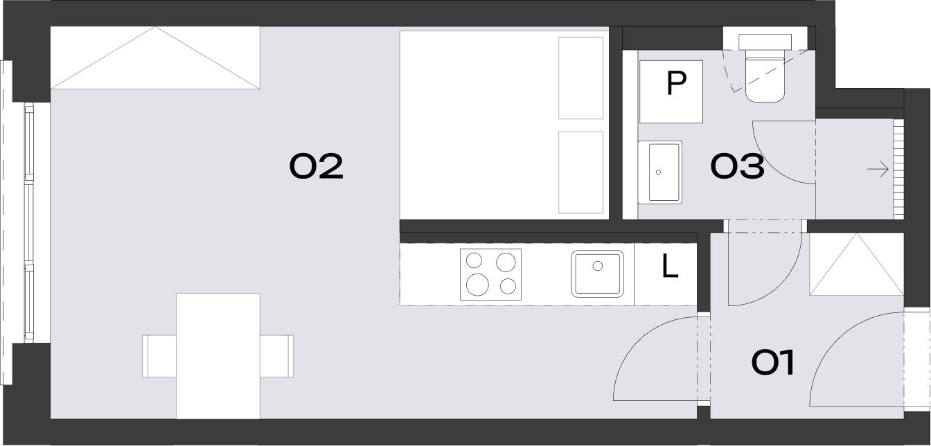 | B8_03.02 | byt | 3.NP | 1+kk | V | 28,9 m² | – / – | – / – | 28,9 m² | 2028 | Rezervováno | |||