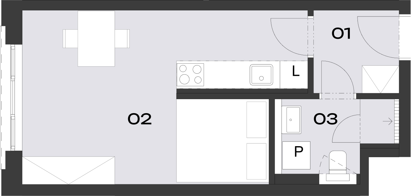 | B8_03.02 | byt | 3.NP | 1+kk | V | 28,9 m² | – / – | – / – | 28,9 m² | 2028 | Rezervováno | |||