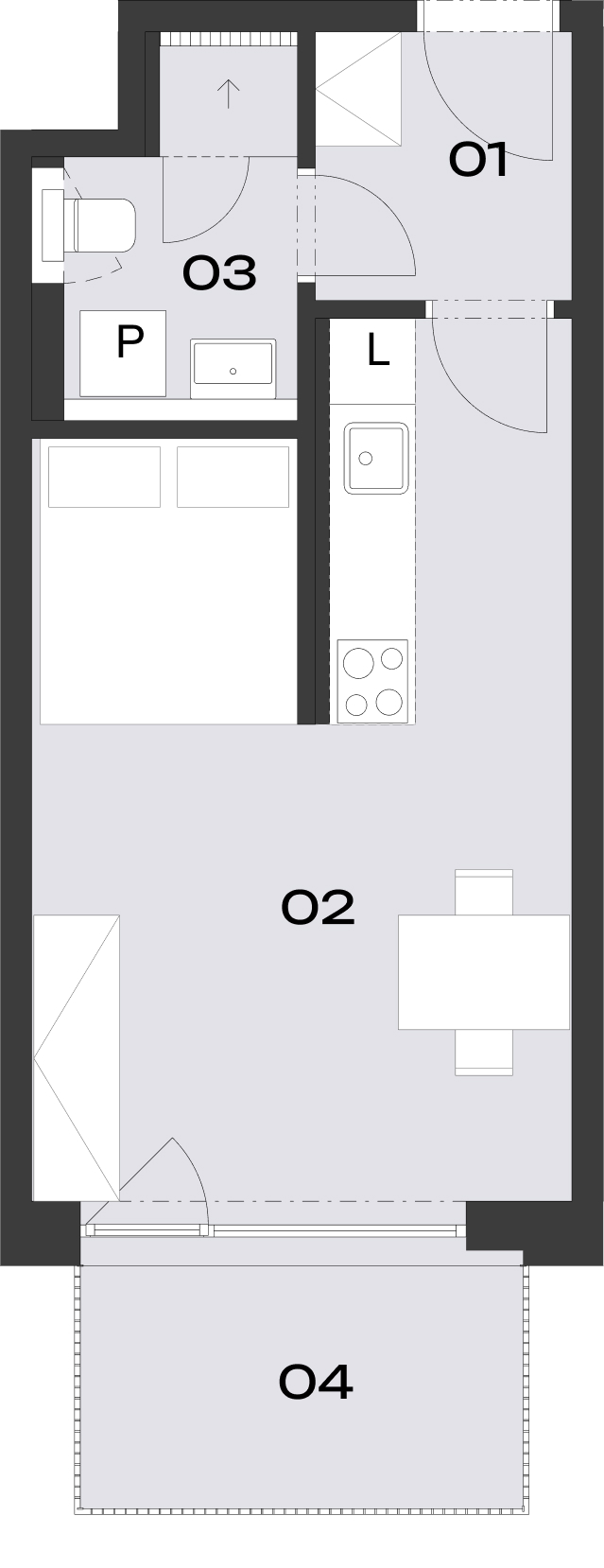 | B1_03.04 | byt | 3.NP | 1+kk | Z | 23,9 m² | – / – | – / – | 23,9 m² | 2028 | Rezervováno | |||