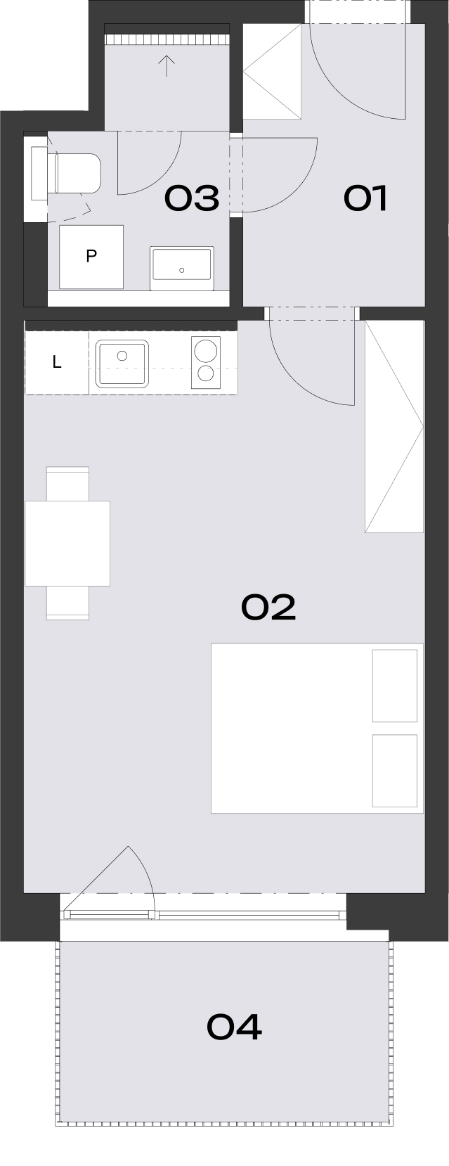 | B1_03.04 | byt | 3.NP | 1+kk | Z | 23,9 m² | – / – | – / – | 23,9 m² | 2028 | Rezervováno | |||