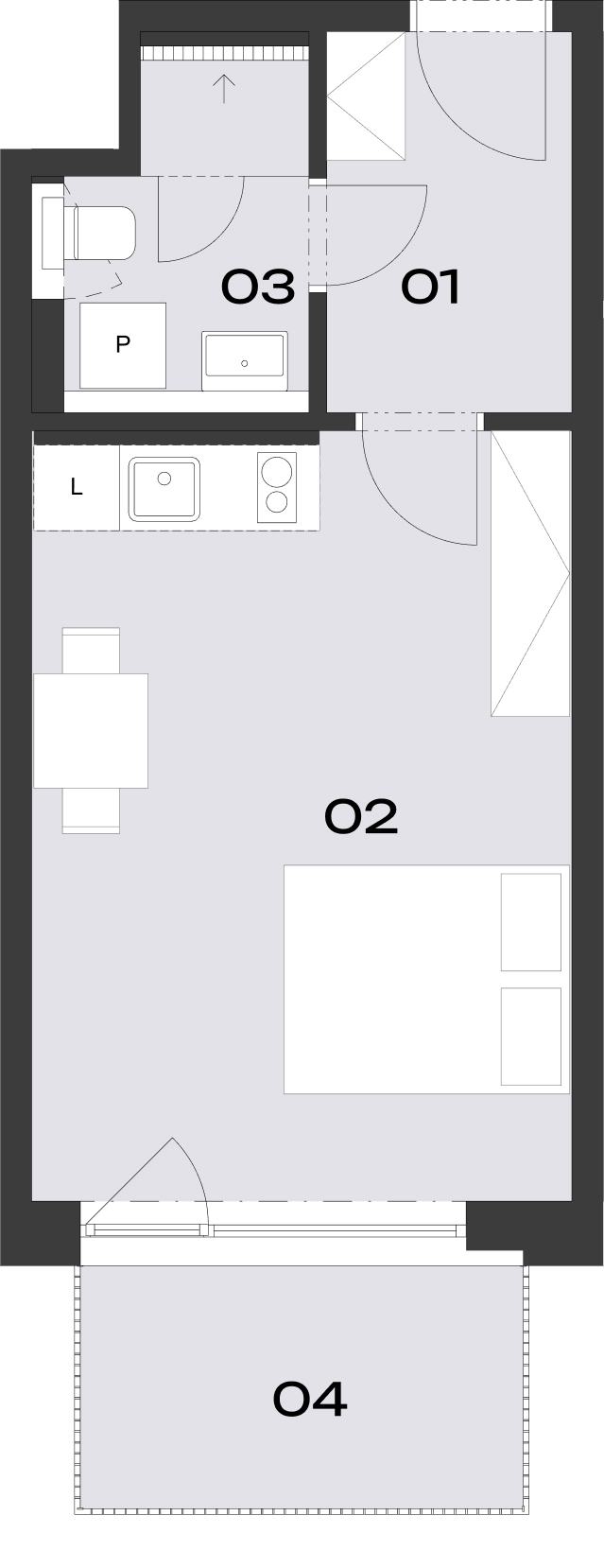 | B1_03.04 | byt | 3.NP | 1+kk | Z | 23,9 m² | – / – | – / – | 23,9 m² | 2028 | Rezervováno | |||