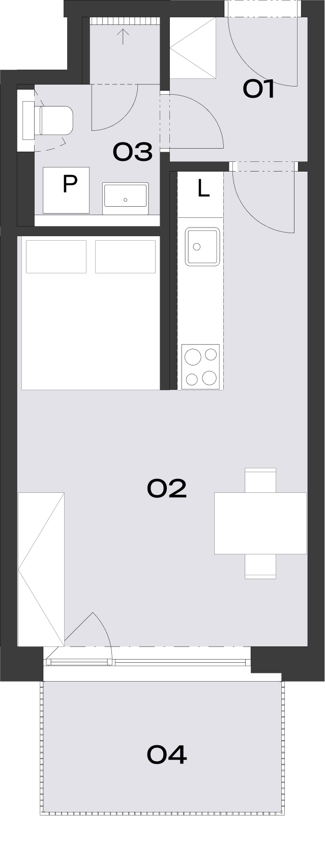 | B1_03.04 | byt | 3.NP | 1+kk | Z | 23,9 m² | – / – | – / – | 23,9 m² | 2028 | Rezervováno | |||