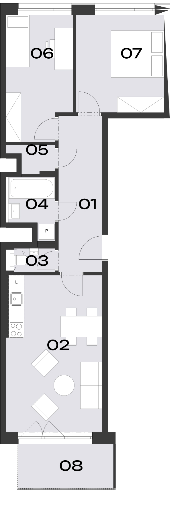 | B8_03.06 | byt | 3.NP | 3+kk | Z | 87,4 m² | 6,6 m² / – | – / – | 94,0 m² | 2028 | Na vyžádání | |||
