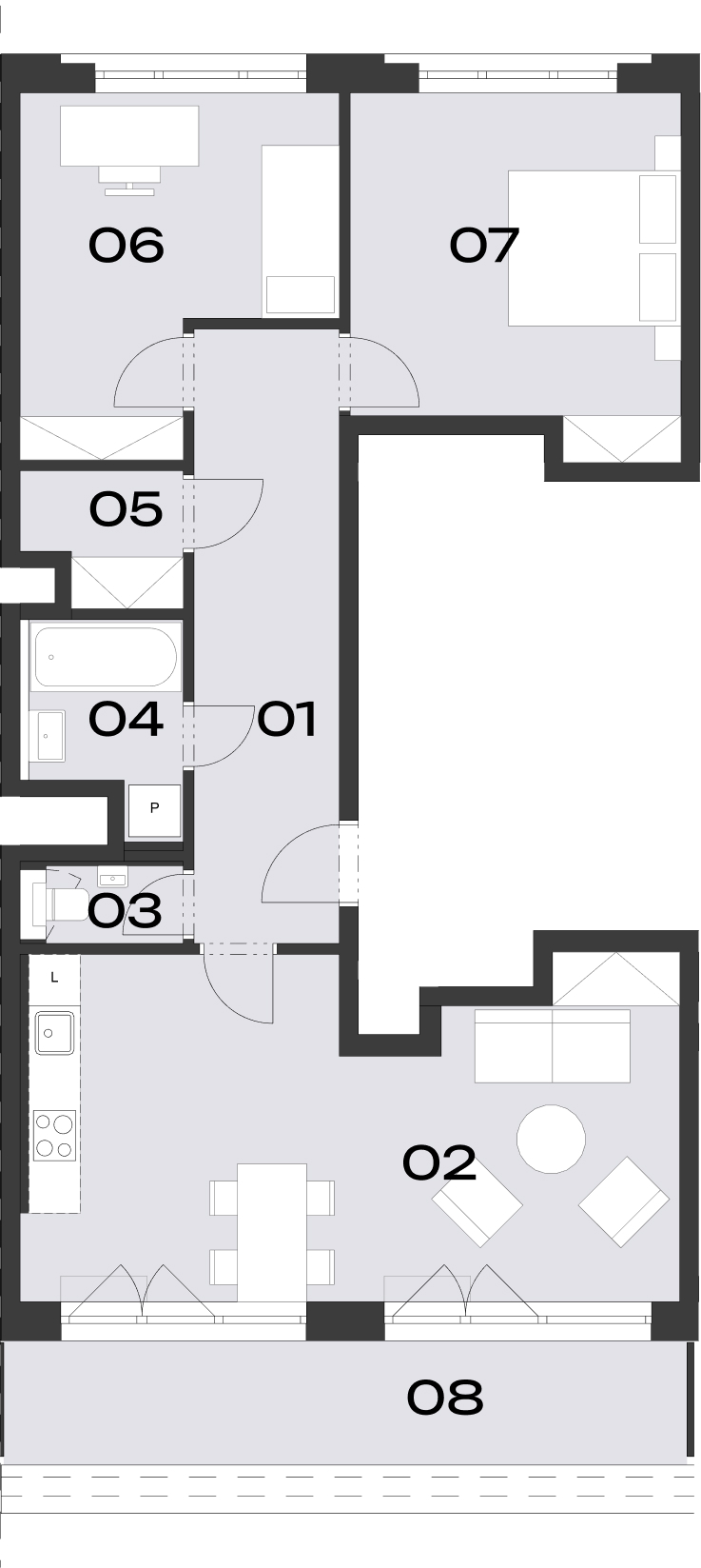 | B8_03.06 | byt | 3.NP | 3+kk | Z | 87,4 m² | 6,6 m² / – | – / – | 94,0 m² | 2028 | Na vyžádání | |||