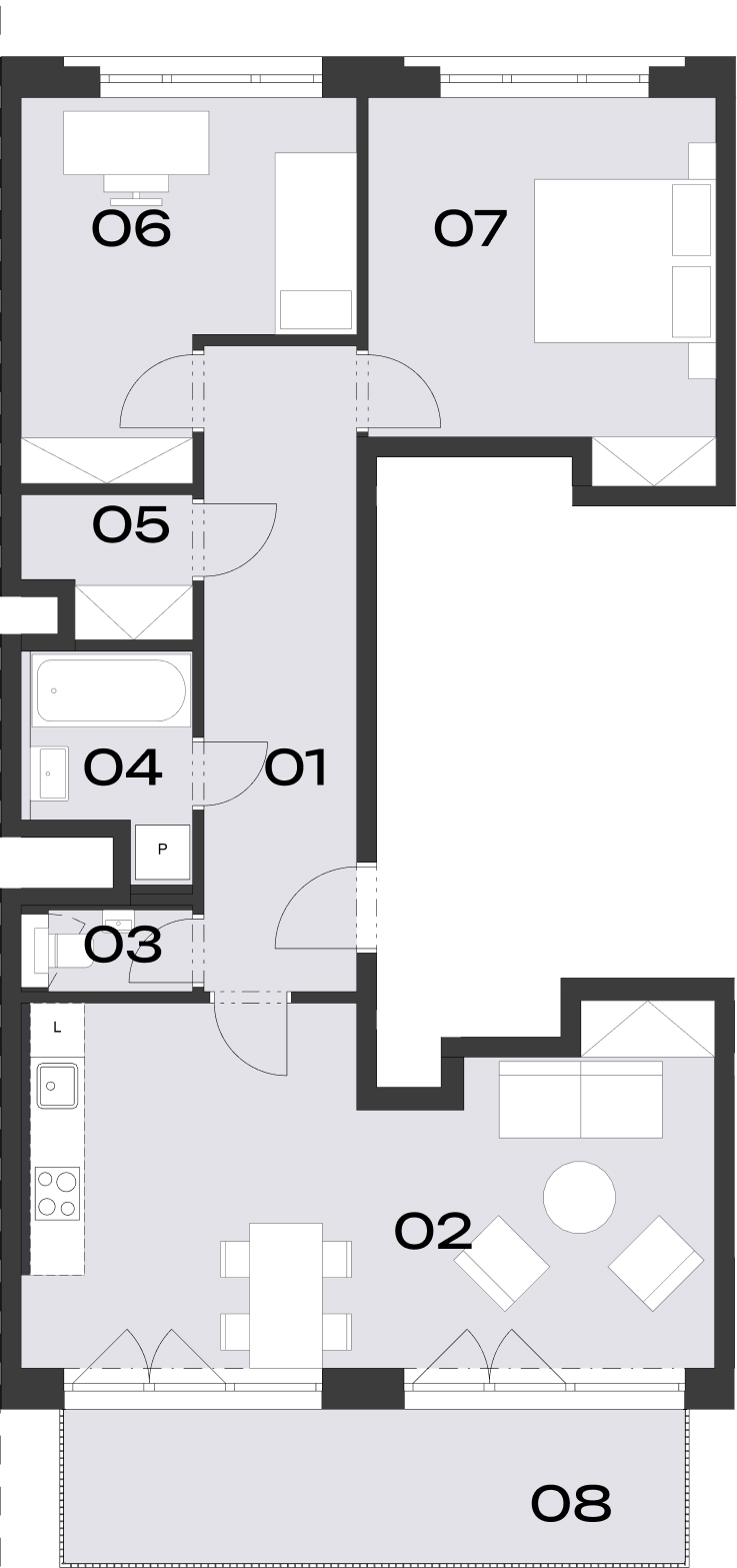 | B8_03.06 | byt | 3.NP | 3+kk | Z | 87,4 m² | 6,6 m² / – | – / – | 94,0 m² | 2028 | Na vyžádání | |||