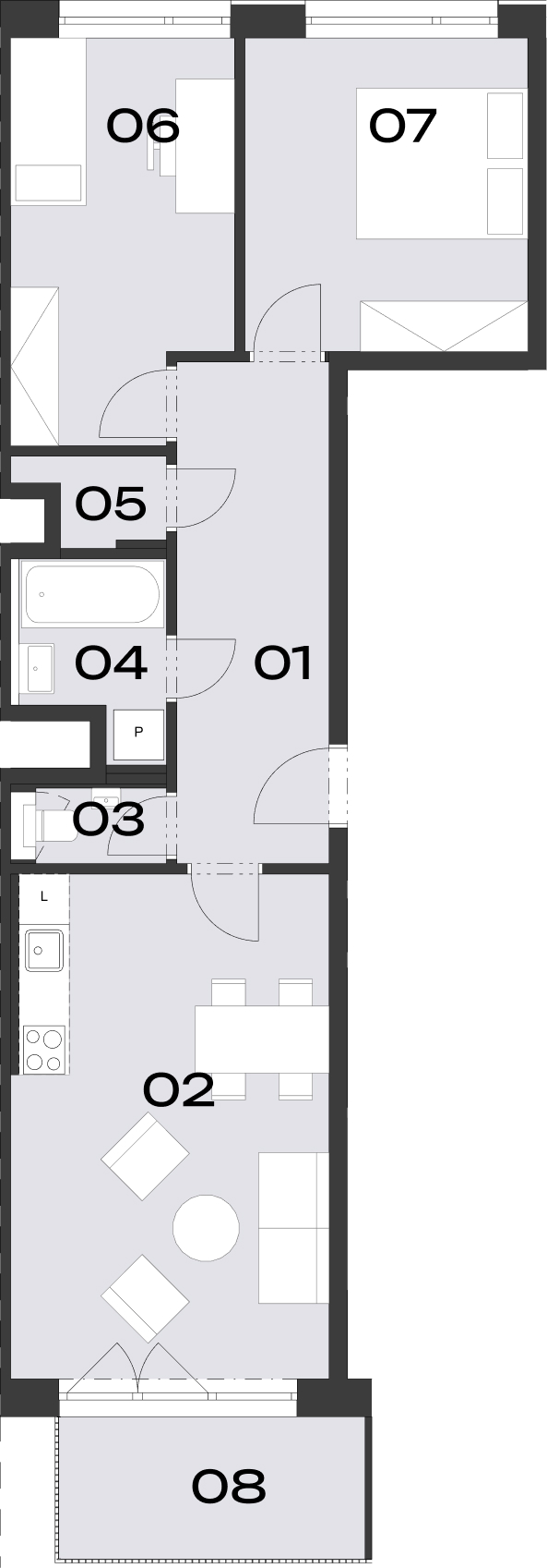 | B8_03.06 | byt | 3.NP | 3+kk | Z | 87,4 m² | 6,6 m² / – | – / – | 94,0 m² | 2028 | Na vyžádání | |||