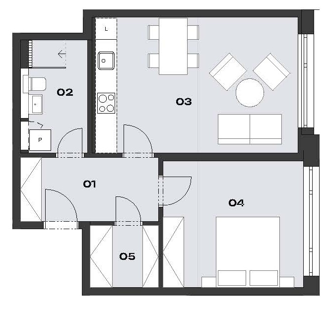 | B1_04.05 | byt | 4.NP | 3+kk | ZV | 83,5 m² | 5,4 m² / – | – / – | 88,9 m² | 2028 | Na vyžádání | |||