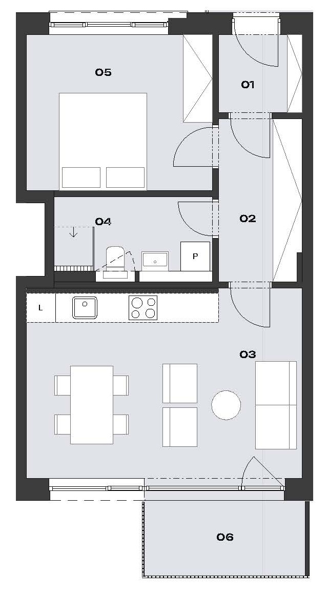 | B5_06.01 | byt | 6.NP | 3+kk | SJ | 82,1 m² | 12,8 m² / – | – / – | 94,9 m² | 2028 | Na vyžádání | |||