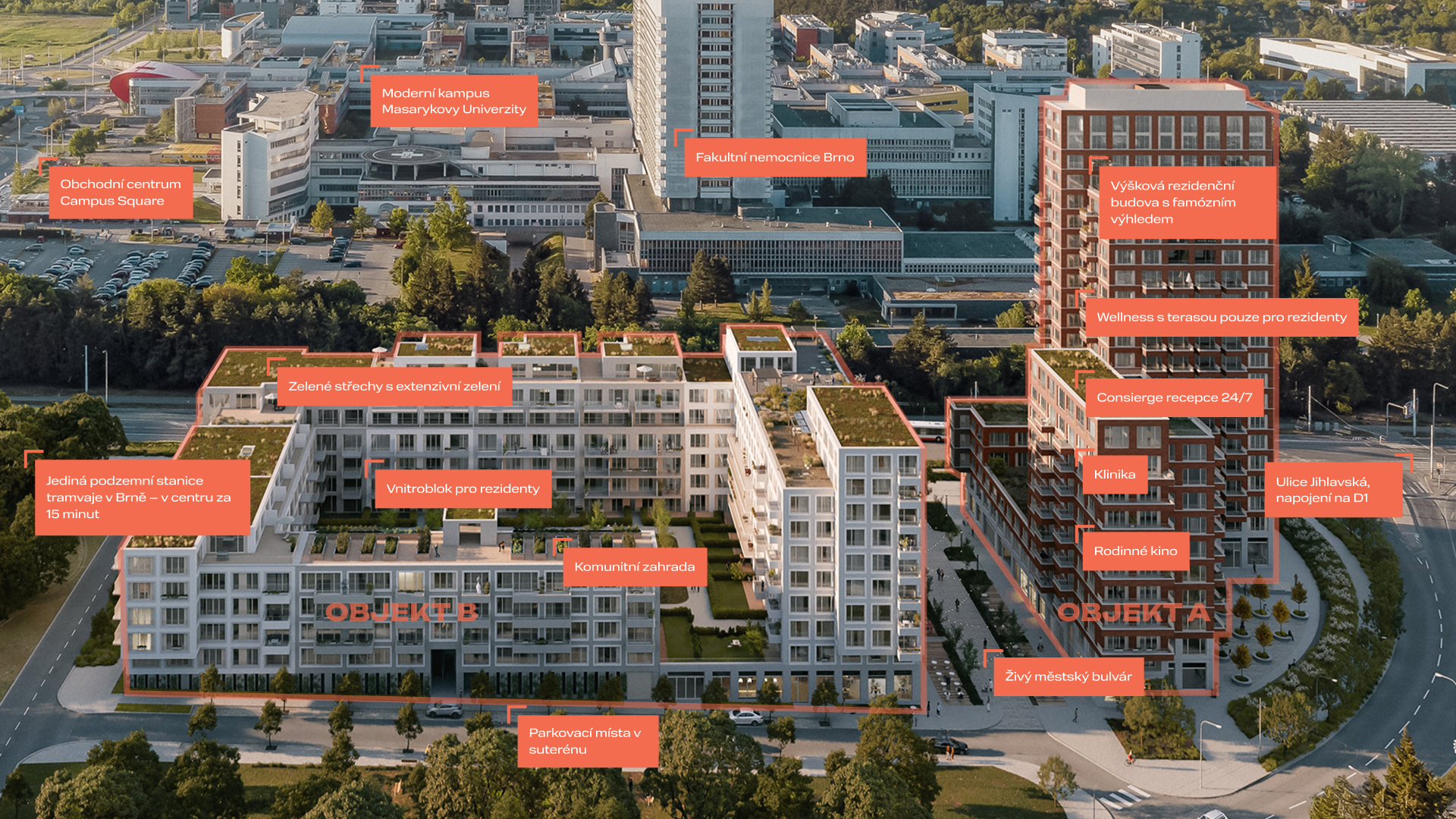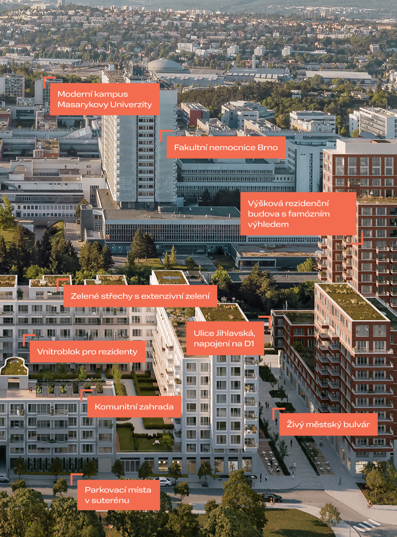 Tohle místo čekalo na svůj čas! Nákupy, nemocnici a kampus máš přes ulici, školy, školky kousek pěšky a šalinou jsi za 15 minut v centru. A když zatoužíš po troše volnosti, vydej se na Kamenný vrch nebo ještě dál. Na D1 jsi odtud dřív než nastartuješ svůj oblíbený playlist.
